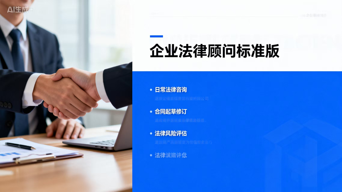 适用于成熟运营并即将扩大规模生产、上市融资、对外投资、连锁经营的企业,服务周到,法律风险多方面狙击。
