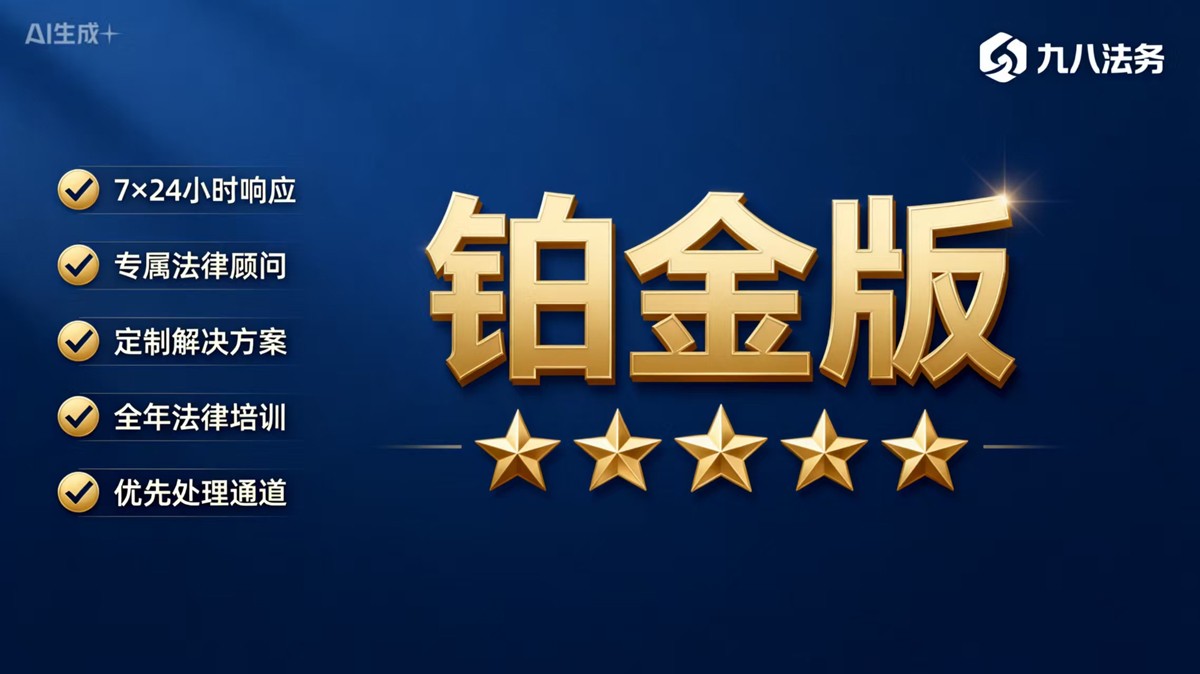 铂金套餐 | 用于大中型企业,九八法务助力企业平稳运营,尊享优质合作机遇/适用于计时报价的顾问单位 | |